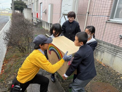 自分たちで説明の資料や呼びかけのポスター、集めるダンボールのデコレーションを行いました。最初はなかなかうまくいかず、苦戦したようです。
