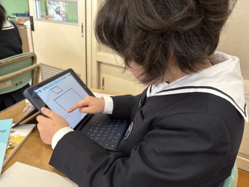 小学5年生の算数の授業では、平行四辺形の面積を求める学習で、子どもたちはまずロイロノート上のマス目に思い思いの平行四辺形を描きました。