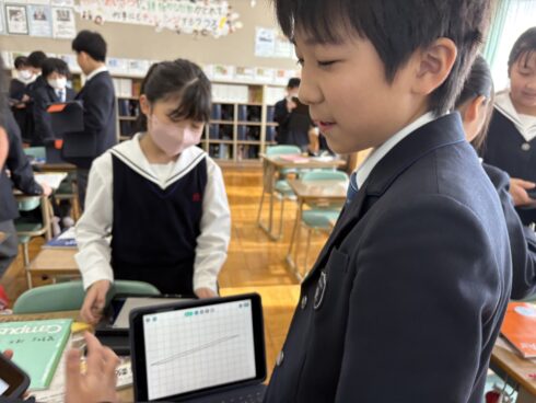 その後、友達同士で描いた図形を見せ合い、どのように面積を求めたかを熱心に交流しました。