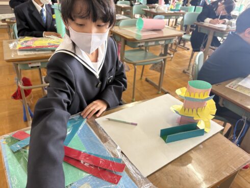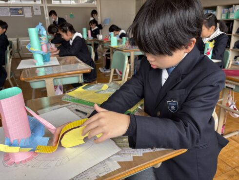 4年生の図工の授業では、基本の「作り方」を丁寧に確認する真剣な眼差しと、そこから一歩踏み出し、自分だけの「オリジナル」を追求する、大胆な発想力の両方が見られました。