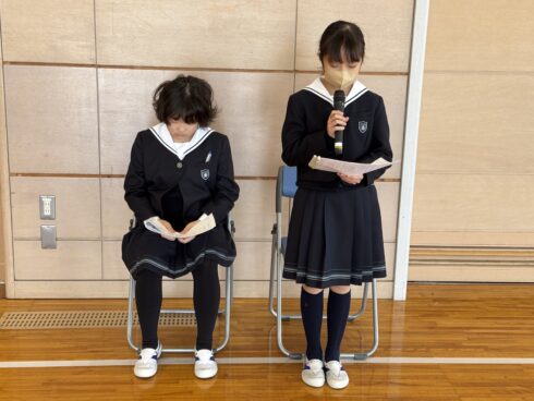 帰りの会では、日直の子どもたちが司会となり、会の進行を立派に務めます。