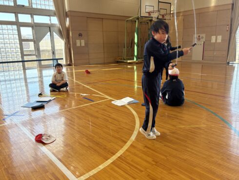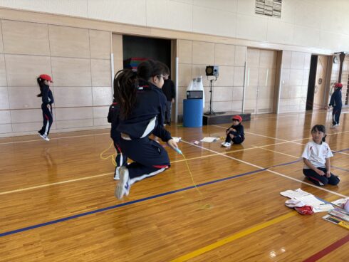 体育の縄跳びでは、昨日の自分を超えるために、どの子も真剣な表情で縄を回しています。