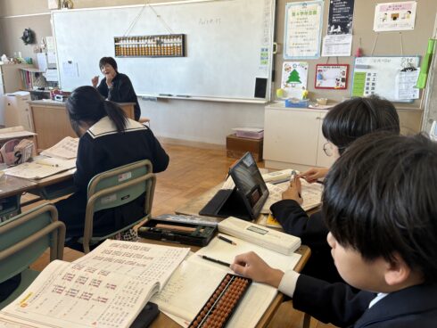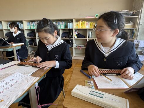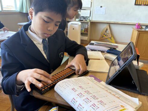 算数の授業で子どもたちが向き合っていたのは、パチパチと心地よい音を奏でる「そろばん」です。