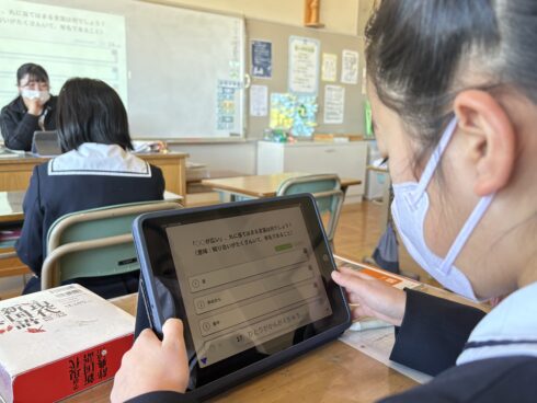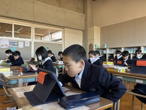 国語の授業ではデジタルツールのテスト機能を活用し、慣用句の早押しクイズに挑戦していました。