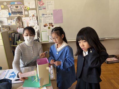 5年生の国語の時間、子どもたちは一筆ずつ心を込めて書いた年賀状を手に、近くの郵便局へ向かいました。