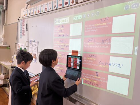 英語の授業では、校内を巡るクリスマスカード探しに挑戦しました。