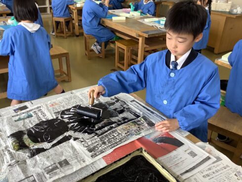 #2年生 #図工の授業 #紙版画 #協力 #心の教育