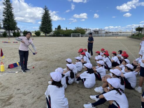 5.6年生対象に福島県体育協会の講師をお招きして、ニュースポーツで話題のスナックゴルフを行いました。