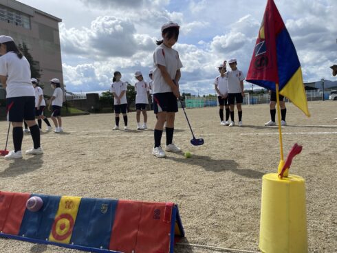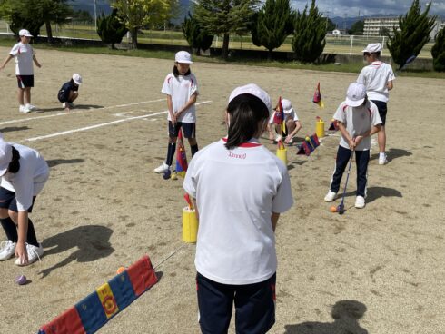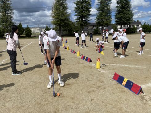 はじめは難しいという声があがりましたが、慣れてくると「ホールインワン」を決める児童もいました。