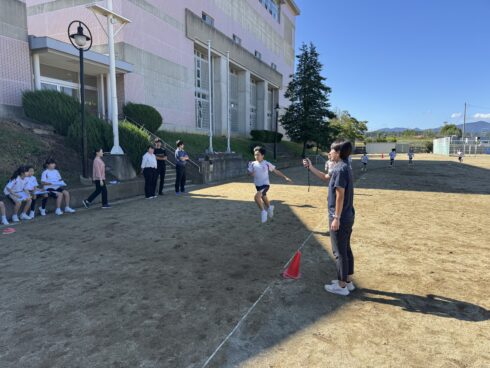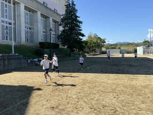 全校生が10月のマラソン大会に向けて、体育の授業や休み時間に持久走練習をしています。