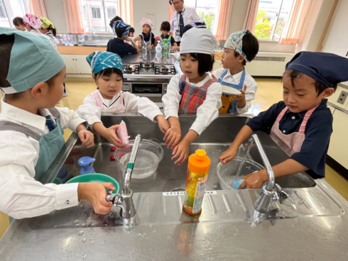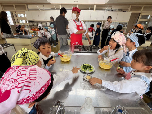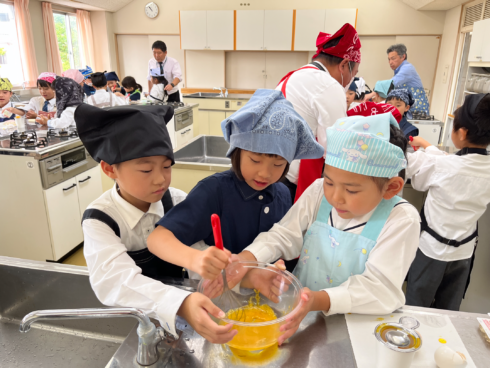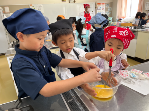 子どもたちは、講師の先生の興味深いお話に真剣に耳を傾け、マヨネーズの原料や仕組みについて熱心に学びました。そして、初めての調理室での実践。グループで協力して取り組みました。力を合わせて出来上がった手作りの味は、格別でした。自分たちの作ったマヨネーズを試食し、市販品との違いを比べるなど、「食」への理解を深める貴重な体験となりました。調理後は、後片付けもみんなで手分けしてスムーズに行うことができ、成長した姿を見せてくれました。