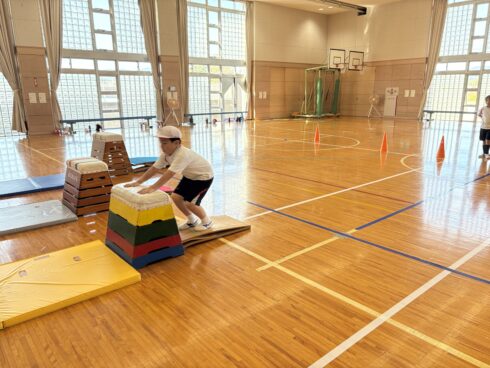 2年生の子どもたちが、わくわくとした表情で跳び箱の授業に取り組んでいます。
