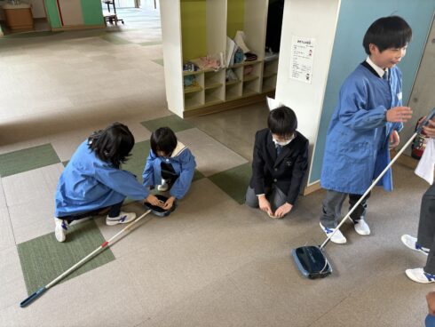 掃除の時間になると、上級生が下級生の手をそっと取り、ほうきの持ち方や雑巾のかけ方、隅々まで心を込めて磨く大切さを、優しく丁寧に伝えます。