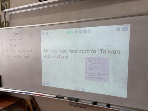 また、英語の授業では、遠く台湾の学校へ送る年賀状(New Year’s Card)を制作していました。