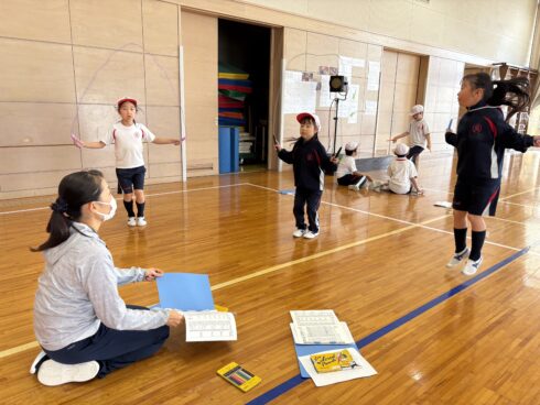 難易度の高い技に挑戦し先生のチェックを受けに行く子、時間を計って自己ベストの更新を目指す子など、一人ひとりが自分のレベルアップのために集中して取り組む姿が見られました。