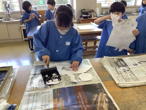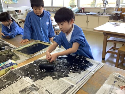 #2年生 #図工の授業 #紙版画 #協力 #心の教育