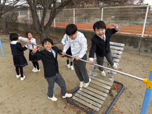 12月の寒さも何のその! 子どもたちの元気な笑顔が校庭に満ちています。