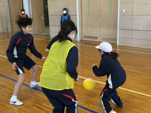 体育の授業では、ボールを夢中で追いかけ、力いっぱい駆け抜ける子どもたちの生き生きとした姿がありました。
