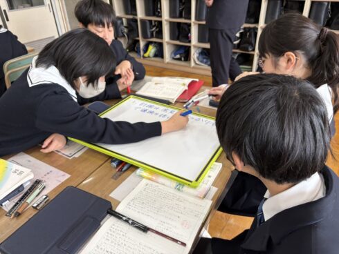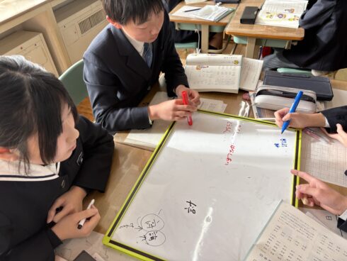 国語の時間、6年生の教室は熱気あるグループワークに包まれていました。