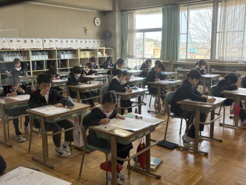 3年生の教室では、子どもたちが算数のテストに真っ向から向き合っています。