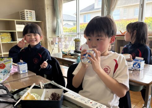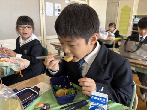 2年生から4年生の教室を覗くと、そこには保護者の皆様が忙しい朝の時間を使って準備してくださった、愛情たっぷりのお弁当を楽しむ子どもたちの姿がありました。