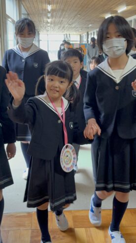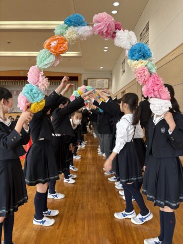 最後は3年生と4年生が作った花のアーチを、やりきった表情でくぐり抜けていきました。