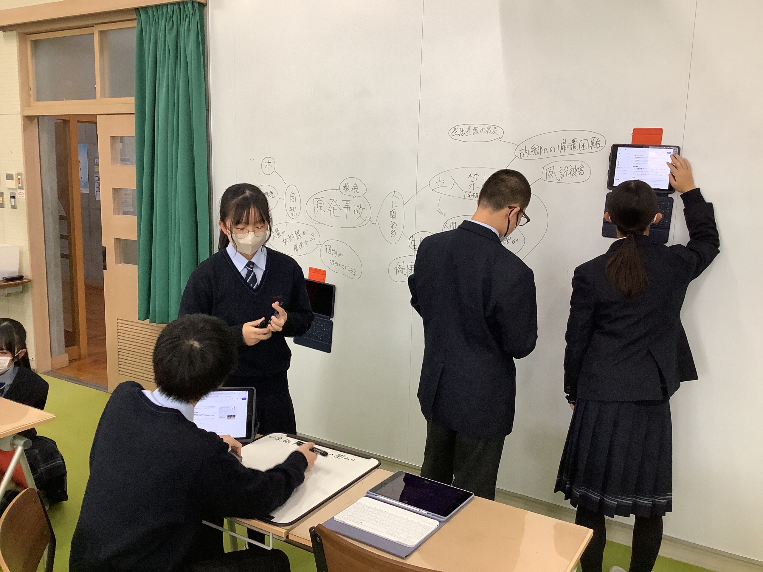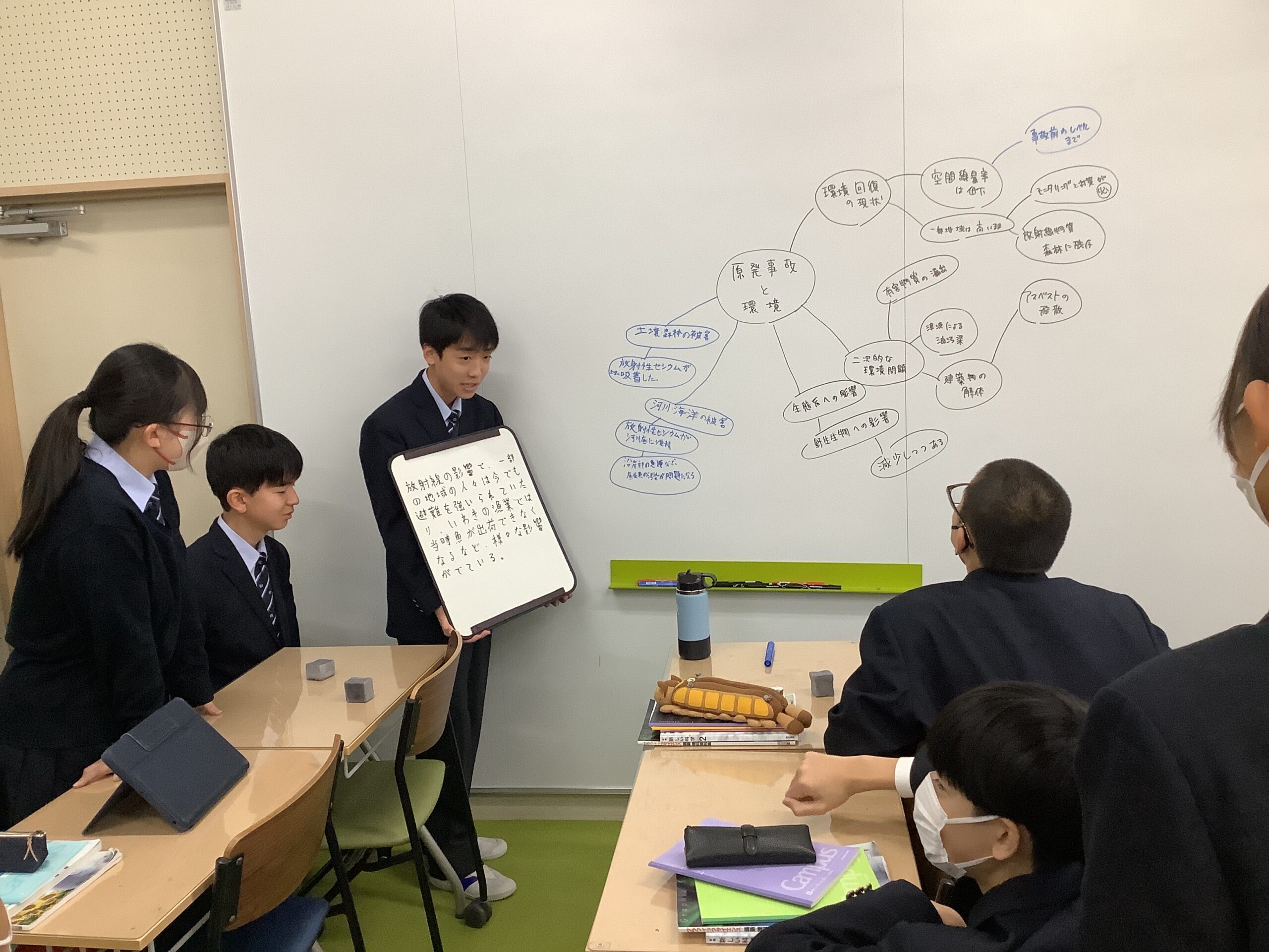この日の授業では、原発事故や放射線に対するイメージを出し合ったり、当時を知る大人へのインタビューを行ったりしました。