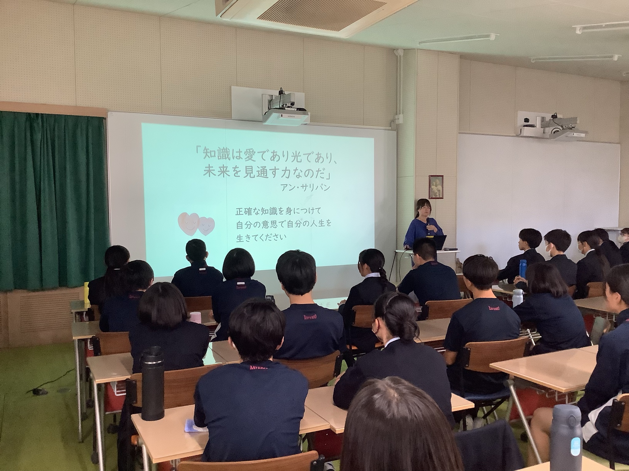 10月15日、中学2年生を対象に、助産師の矢吹 美歌代さんをお招きして性教育の講話を行いました。
