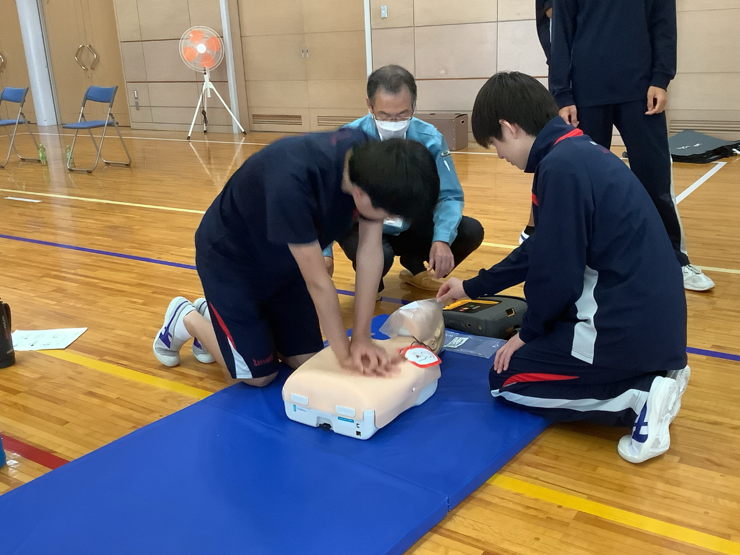 2年生を対象に、心肺停止の人に対して行う救命処置についての講習会を実施しました。