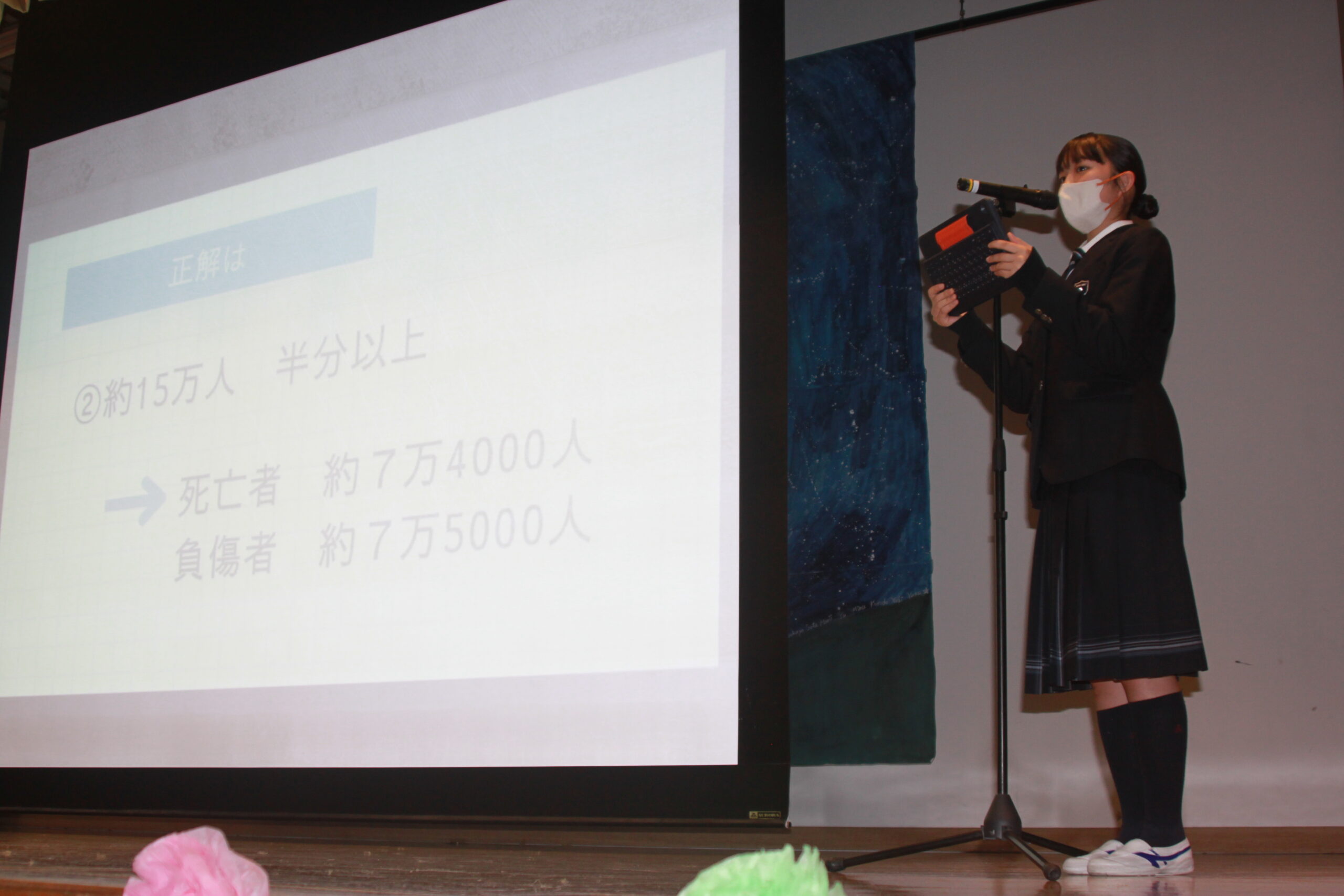 2年生は、栃木県での研修旅行を通して学んだことを発表しました。また、長崎派遣事業報告や郡山市ユースワークショップの発表も行い、それぞれの経験から得た気づきや学びを堂々と語りました。