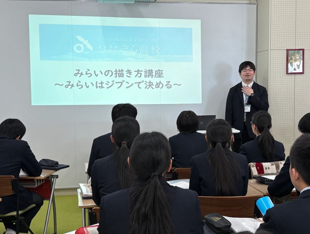 今回はおおそら高校の先生を講師としてお招きし、「自分自身」について、友人と深掘りするワークショップを実施していただき、「どんな大人になりたいのか」を具体的に考えることができました。「みらいは自分で決める」という視点をこれからの高校生活でも、それぞれ実践してほしいと思います。