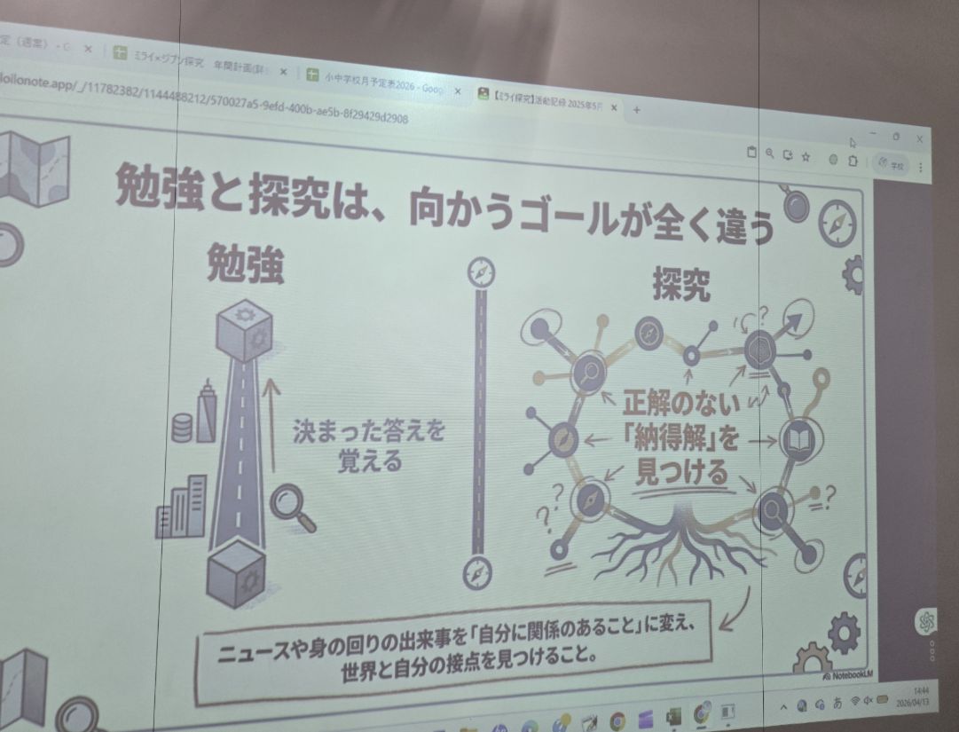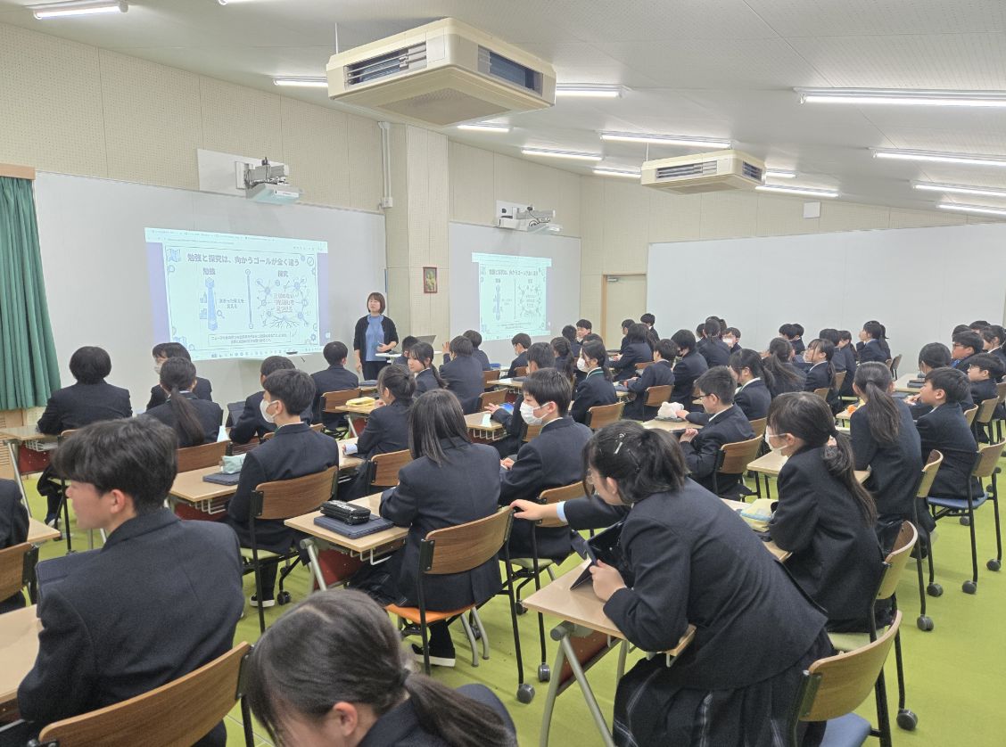 4月のある日、1学年でも、いよいよ本校独自の探究活動「ミライ×ジブン探究」のガイダンスを実施しました。