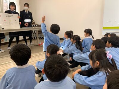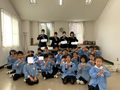 中学生が探求の時間にグループ活動として深めてきたものを園児たちに教えてくれました!