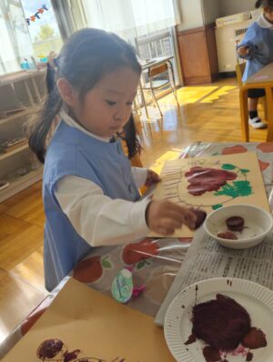 収穫したおいもで、芋版もしました♪