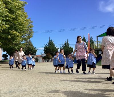 みんなでお友達と歌を歌いながら、公園に向かう子どもたち♩