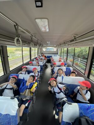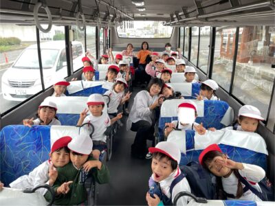 皆でバスに乗って「しゅっぱーつ!」「いってきまーす!」
