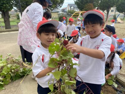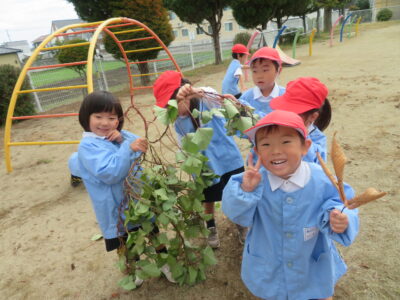 年中・年少児の子どもたちも長いツルや大きなおいもに大喜びでした♬