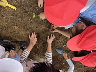 掘り終わった花壇では、小さいおいも探し!