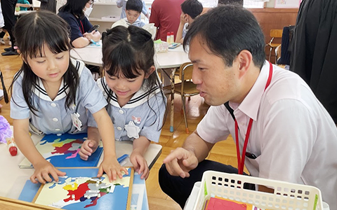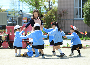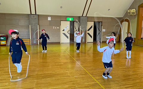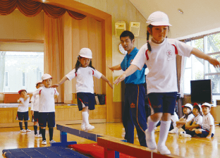 活動内容によって、同年齢や異年齢で行います。体育や英語活動は、専門の先生が指導しています。