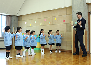 体を動かして行う歌・ゲームなどを取り入れ、楽しみながら行っています。