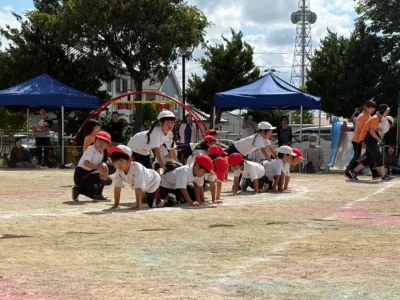 障害物競走、組立体操、親子競技やダンス、リレーと、各種目とも友達と一緒に力を合わせてキラキラと目を輝かせていた子どもたちです。