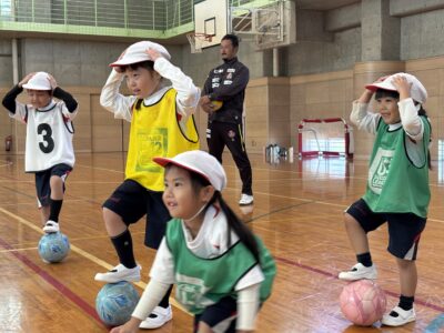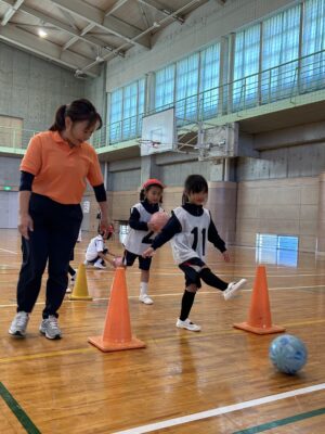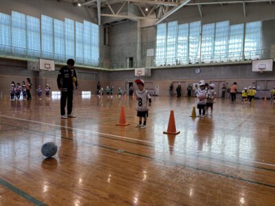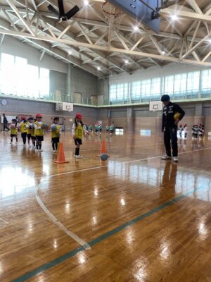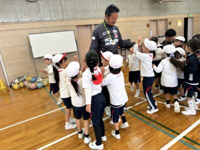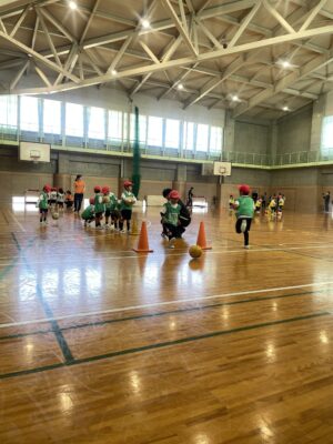 10月23日(木)、年長児のサッカー教室を学園体育館で行いました!