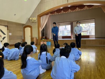 10月30日(木)に、ザベリオ小学校の先生による「わくわく教室」を年長児対象に行いました。