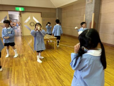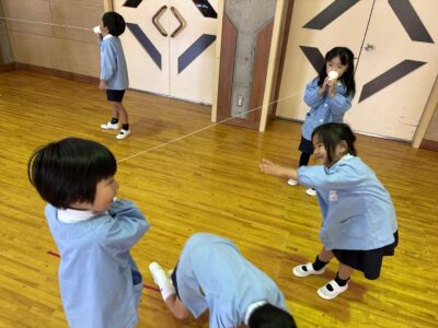 「難しい~!」「できたね!やったー!」と苦戦しながらもグループで協力し合い、集中して取り組む姿が見られました。