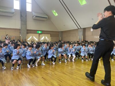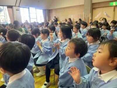最後にみんなで手拍子をしながら『ミッキーマウスマーチ』や『ザベリオ幼稚園賛歌』を元気いっぱい歌いました☆彡