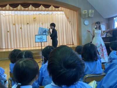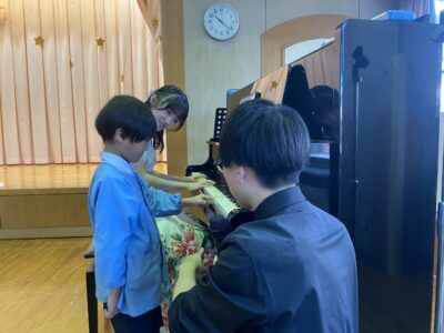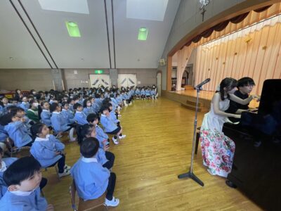 ザベリオ幼稚園を卒園した大塚菜々子さんが久保亮大さんと一緒に幼稚園に来てくれて、素敵なピアノの演奏をたくさん聞かせてくれました♩