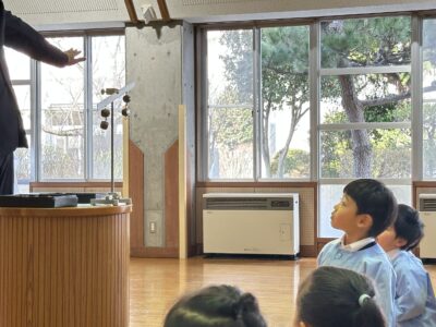 1月22日(木)ザベリオ小学校の菊地先生と佐々木先生から『理科の実験出前講座』を受けました。