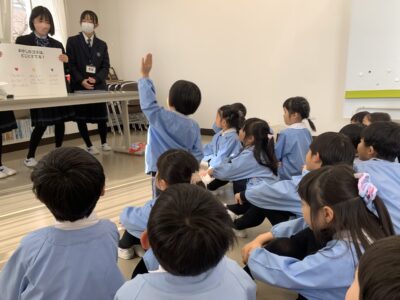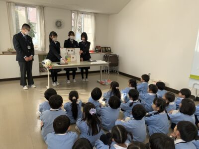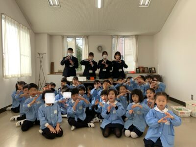 中学生が探求の時間にグループ活動として深めてきたものを園児たちに教えてくれました!