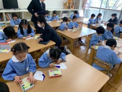 1月26日(月)、ザベリオ中学校の皆さんと年長児が一緒にSDGsについて考えました。