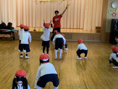 3月6日(金)にファイヤーボンズから「スポコミュ!」のお兄さんが来てくれて運動遊びをしました♩